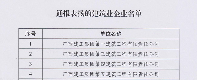 日前,柳州市住房和城乡建设局对迎接国务院2019年度保障农民工工资支付工作考核表现突出的企业予以通报表扬,集团公司一建公司、三建公司、四建公司和五建公司榜上有名。