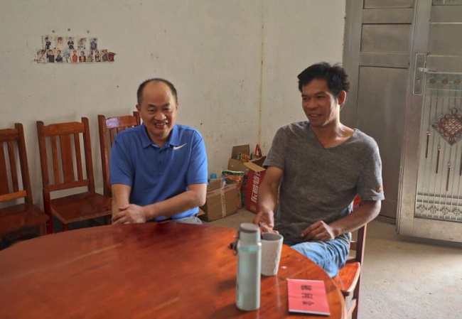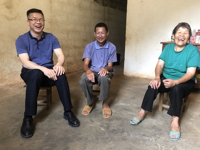 陆志斌与贫困户亲切交谈