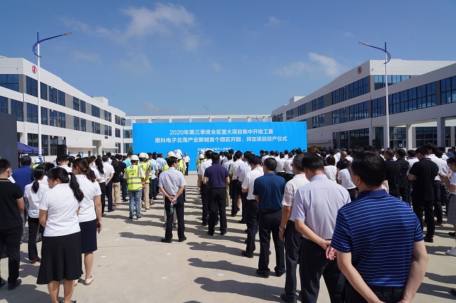 王乃学宣布北海市2020年第三季度重大项目集中开竣工活动启动,惠科电子北海产业新城首个园区开园、邦定项目投产。