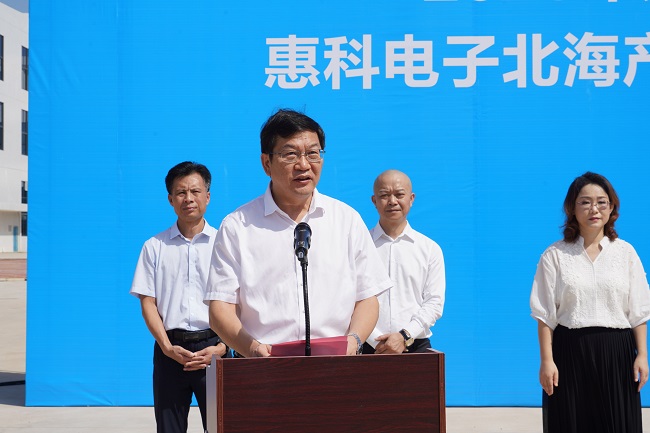蔡锦军在致辞中表示,此次惠科电子北海产业新城首个园区开园、邦定项目投产是北海电子信息产业发展进程中的重大喜事和新的开端,为打造全球最大的智能电视生产基地和西南地区最大的智能手机生产基地奠定了坚实的基础。