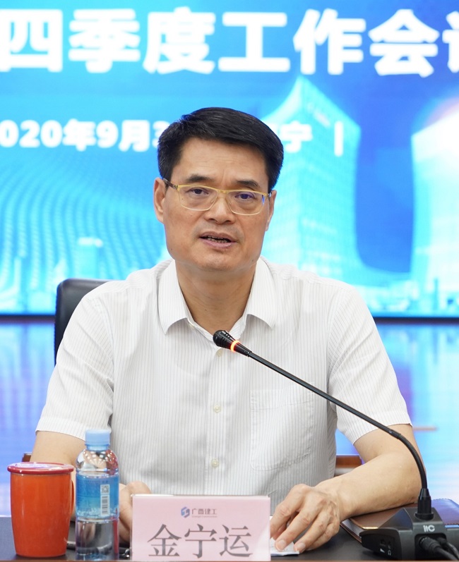 会上,金宁运简要总结三季度经济运行情况,充分肯定经济运行取得的成效,分析存在的困难和问题,部署第四季度工作。他指出,第四季度要奋力完成营业收入320亿元、利润总额10亿元、新签合同额850亿元的目标任务。四季度重点抓好十个方面工作,一要全面实行分管负责制。要把分管工作业绩与薪酬挂钩,分管领导要对分管部门的工作负责,主动与部门谋划、研究,深入一线调研解决问题。部门主要负责人要对分管领导负责,主动汇报、主动作为,与分管领导同频共振,形成合力。二要启动实施全国化经营战略。要发挥建工控股公司“双特”资质优势,在已组建华东区域公司基础上,组建华中、华南、西南区域公司,创新经营模式,发挥经营合力,全面拓展全国市场。三要大力开拓基础设施业务。要抢抓新基建市场机遇,充分依托绿地集团,推动由房建专业施工为主向房建+新基建并重转型,用好农发行给予的300亿元授信额度,积极拓展基础设施业务。四要全面对接大业主、承接大项目。要在广西区内,积极对接广投集团、农垦集团等大企业,建立长期合作关系,发挥施工、房地产开发的优势,实现双赢。在广西区外,在绿地集团和绿地大基建集团的支持下,积极对接大业主、承接更多的大项目。五要全面提升项目管理能力和水平。要努力提升项目建设施工管理、工程建设和成本管控能力,整合集团资源优势,聘用优秀项目经理和团队,安排有实力的分公司、子公司承接大项目。六要加大清收清欠和亏损项目治理力度。运营管理部要指导和督促各建安企业对已送审未审定、已审定未结算、已结算未付清的工程项目的结算清收。权益资产部要谋划好清收清欠和停缓建项目盘活工作。亏损项目治理办公室要坚持目标不变、力度不减、机构不撤,加强亏损项目治理的组织实施工作。七要严格抓好质量安全工作。要严格抓好工程质量管控,全面落实安全生产各项措施,严防质量安全事故的发生,保证工程质量过硬和安全生产形势平稳。八要加强队伍建设。根据混改后企业发展需要,调整优化总部机构设置和人员配备,做到精简高效,提高效率。着眼实际需要,加强培训工作,全面提高队伍素质,增强干事创业能力和本领。九要勤俭节约办企业。三年发展目标压力非常大,要开源节流、艰苦奋斗,挖掘内部潜力,勤俭办企业,坚持少花钱多办事的理念,节约每一分钱,严禁讲排场、严禁铺张浪费。 十要做好稳定工作,严防群体性事件发生。要确保外部稳定,加强农民工工资管理和发放工作,确保按时足额发放。全面排查和有效化解信访维稳隐患,处置历史遗留问题,保持集团内部社会稳定。