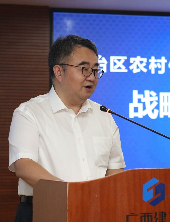 金宁运对罗军一行的到来表示热烈欢迎,对区农村信用社的长期支持表示感谢,并简要介绍集团公司业务开展、管理创新和混合所有制改革情况。他说,混改后的广西建工将尽快适应新体制新机制,坚持党建引领发展,自觉接受政府的领导,秉承“品质源于责任,诚信创造价值”的理念,强弱项、补短板,拓市场、谋发展,奋力实现2023年营业收入超2000亿元、利税总额超100亿元的三年目标任务。他表示,区农村信用社业绩突出、实力雄厚,多年来持续助推三农和扶贫工作的开展,为广西经济社会发展作出了突出贡献,值得广西建工尊敬和学习。他希望,双方进一步加强合作,以此次签订战略合作协议为新起点,深化合作层次,扩大合作成果,携手砥砺奋进,开创合作共赢美好未来,为广西经济社会发展作出新的更大贡献。