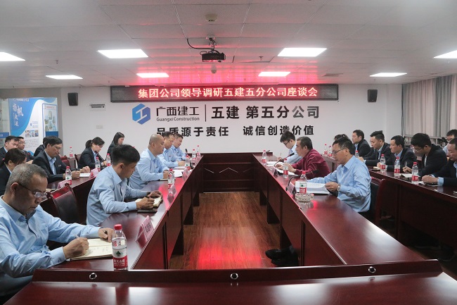 10月22日下午,广西建工集团有限责任公司党委副书记陈家坚到广西建工集团第五建筑工程有限责任公司五分公司调研指导工作。五建公司党委副书记、纪委书记、工会主席彭业波陪同。