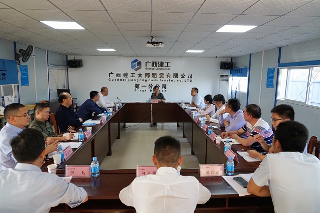 11月13日,广西建工集团有限责任公司副总经理李静丹到广西建工大都租赁有限公司调研指导。集团公司审计绩效部总经理李兴平,公司党总支部书记、董事长黄安权,党总支部副书记、总经理唐广衎,副总经理陈树华参加。