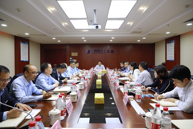 11月17日,绿地大基建集团执行总裁、广西建工集团有限责任公司董事长、党委书记金宁运到五建公司调研指导。集团公司党委副书记陈家坚,董事会秘书、办公室主任(兼)陆志斌,财务总监汪启来陪同。