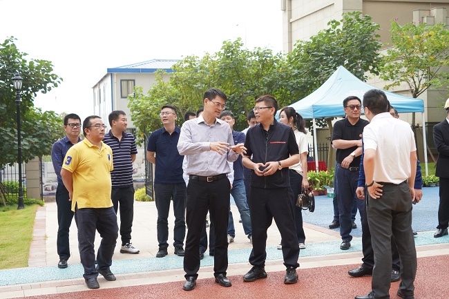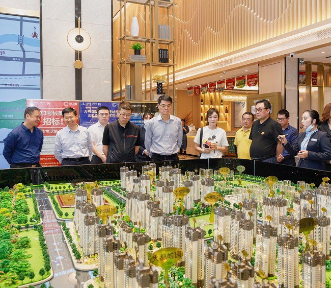期间,薛明辉一行参观建工城项目营销中心并深入7#地块施工现场实地考察,听取项目开发、建设和销售情况汇报。