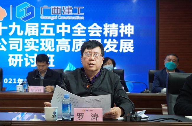 在研讨班总结会上,各小组代表分别交流发言,罗涛对研讨班进行总结。他指出,研讨取得了“四个进一步”收获:进一步学习领会了党的十九届五中全会精神和自治区党委十一届九次全会精神,进一步把握了集团站在新发展起点上面临的新形势新要求,进一步明确了未来三年抓工作的方针和破解困难的抓手,进一步了学习交流了改革发展的好想法好经验。就贯彻落实好研讨班精神,罗涛提出五点要求。一要把广大员工的思想和行动统一到集团公司决策部署上来,凝心聚力、统一思想。要及时学习宣传本次研讨班精神,特别是要学习好宣传好十五字工作方针,凝心聚力、统一步调,形成推动集团公司发展的强大力量。二要持续学习贯彻落实十九届五中全会精神,把准方向、推动发展。要深入学习领会和准确把握全会精神,围绕集团公司目标任务,落实好新发展理念,在构建新发展格局中找准切入点,建立新增长点,创造新业绩。三要突出贯彻落实十五字工作方针要求,真抓实干、创造业绩。要认真按照十五字工作方针的新要求,奋力拼搏,攻坚克难,一项一项贯彻好,一个一个落实好。集团公司将定期不定期督查于各公司贯彻落实十五字工作方针的情况。四要把解决短板问题摆在突出位置,对症下药、稳健发展。要聚焦集团公司发展存在的问题,着力破难解困,补短板、强弱项,促进企业更加稳健发展。五要持续锤炼本领提升能力,担当实干、廉洁从业。要提高研讨班提出的七个能力,展现“六有新担当”,以我将无我、不负使命的精神干出新业绩、开创新局面。