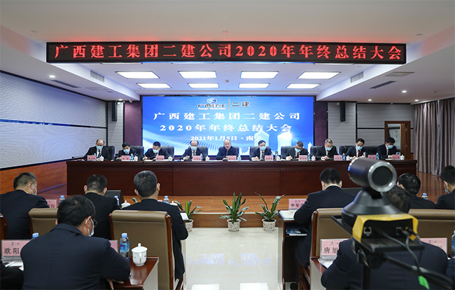 1月5日,广西建工集团第二建筑工程有限责任公司2020年年终总结大会在建工大厦2号楼912会议室召开。集团公司副总经理唐农生,二建公司董事长、党委书记黄鼎龙,公司执行总经理、党委副书记卢军宝,公司领导班子成员黄志坚、廖宏福、卫奕忠、叶彤、覃伟、黄元华、袁小军出席并讲话。