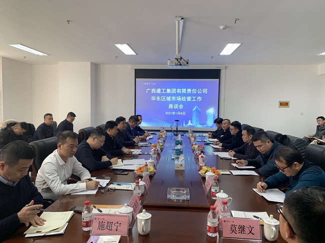 1月8日下午,广西建工集团有限责任公司华东区域市场经营工作座谈会在江苏南京召开。会议研究部署集团公司华东区域市场经营工作。集团公司副总经理侯立林出席并讲话,总经理助理、市场二部总经理黄深红主持。