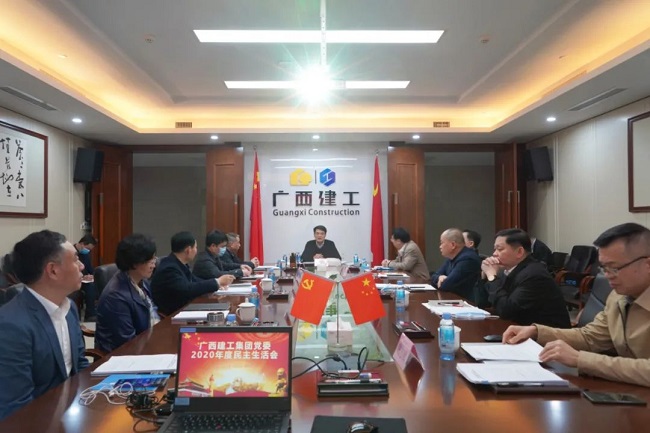 1月29日,广西建工集团有限责任公司党委2020年度民主生活会在建工大厦1号楼2213会议室召开。绿地大基建集团执行总裁、集团公司董事长、党委书记金宁运主持会议。集团公司总经理、党委副书记、董事罗涛,班子成员陈家坚、余仲远、陈礼松、唐农生、侯立林、赖榆、李静丹、陆志斌、汪启来参加。