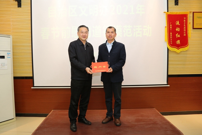 2月1日,自治区党委宣传部副部长、一级巡视员、广西新闻出版局(版权局)局长王晓华率队到广西建工集团第一建筑工程有限责任公司轨道壹号城项目,慰问公司职工——第四届自治区道德模范谢鸿卫和第七届全国道德模范提名奖获得者罗日洪。集团公司党委副书记陈家坚,党群工作部主任、党委统战部部长、工会副主席毛晓冬,自治区党委宣传部文化体制改革和发展处副处长何明栩,自治区国资委党委宣传部部长林锴,一建公司党委副书记、纪委书记、工会主席黄远奇参加。