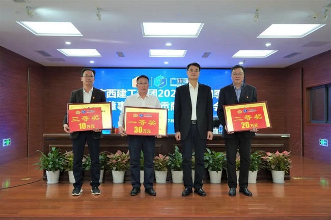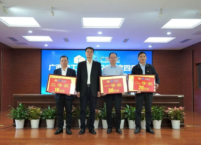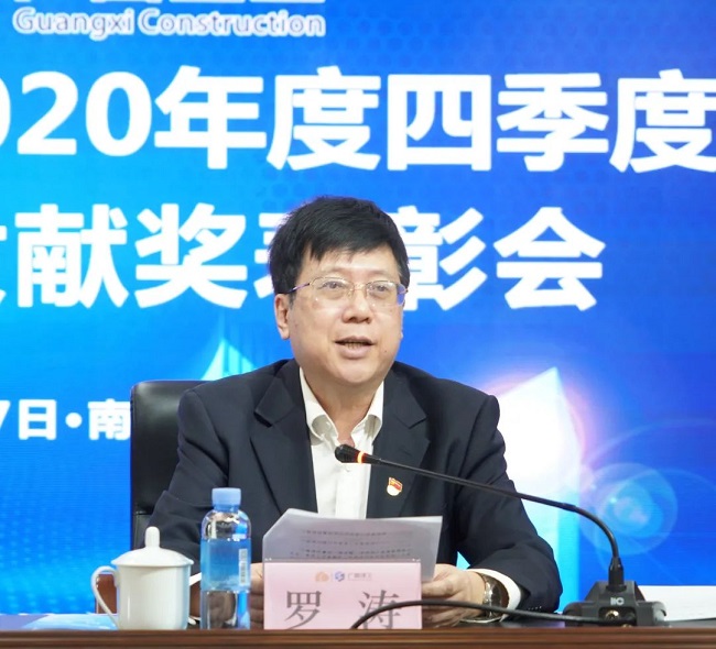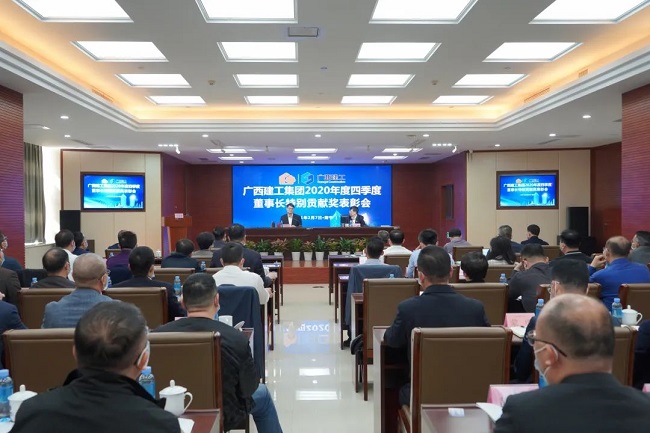2月7日,广西建工集团有限责任公司2020年四季度“董事长特别贡献奖”表彰会在建工大厦1号楼2301会议室召开。会议总结四季度工作情况,表彰获奖企业,动员集团上下,振奋精神,鼓足干劲,继续奋战一季度,奋力实现开门红,为全面实现全年目标任务奠定基础。绿地大基建集团执行总裁、集团公司董事长、党委书记金宁运为获奖企业颁奖并讲话。集团公司总经理、党委副书记、董事罗涛主持,领导班子成员陈家坚、余仲远、陈礼松、唐农生、侯立林、赖榆、李静丹、陆志斌、汪启来参加。