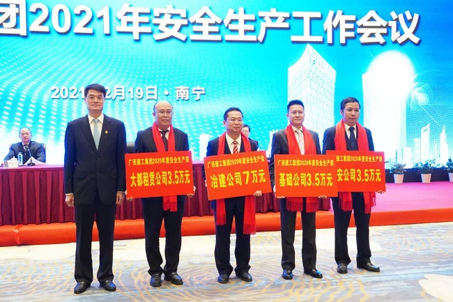 2月19日,广西建工集团有限责任公司2021年安全生产工作会议在南宁召开。绿地大基建集团执行总裁、集团公司董事长、党委书记金宁运出席并讲话,集团公司总经理、党委副书记、董事罗涛作安全生产工作报告。领导班子成员陈家坚、余仲远、陈礼松、侯立林、赖榆、李静丹、陆志斌、汪启来出席。唐农生主持会议。