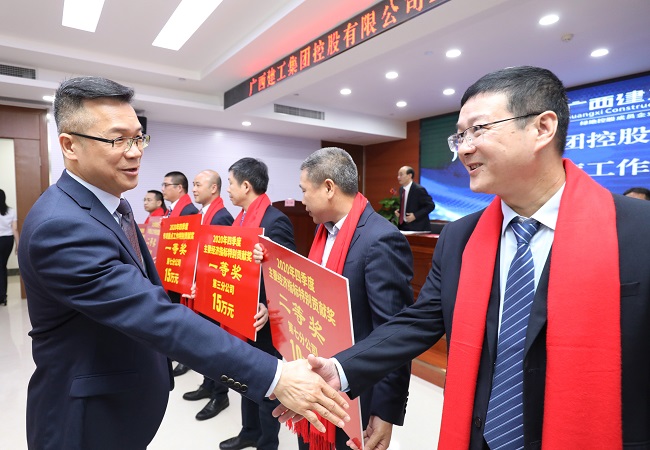陆志斌对受表彰的先进单位、先进集体和先进个人表示祝贺,对公司2020年工作取得的优异成绩表示充分肯定,对公司全体员工表示崇高敬意和衷心感谢。他指出,2020年公司各项工作交出了令人满意的“成绩单”,呈现出持续向好向上向优向强的“新态势”,为今年更好更快发展奠定了扎实基础。他强调,2021年要对标集团公司要求,向高的攀、与强的比、与快的赛,以“211”为新目标,力争完成新签合同额200亿元、营业收入100亿元、利润总额1亿元的任务,全力挺进“百亿企业俱乐部”。他提出七个要求。第一,贯彻集团决策部署,同心同欲同行。要深刻领会集团公司2021年工作会议精神,以“转机制、调方式、抓创新、强管理、重实干”十五字工作方针为指导,落实“抓发展、抓安全、抓改革”三项重点工作,全面防范“十类风险”。第二,咬定目标精准施策,凝心聚力奋战。要紧盯“211”这个新目标,分解目标任务,细化责任分工,深化优化措施,精准靶向发力,抓早抓快抓细,锻长板、补短板、强弱项,展现新作为,创造新业绩。第三,全面推进改革创新,激发强大动力。要坚持以业绩为导向,加快建立市场化的选人用人、薪酬、用工机制,实现管理者能上能下、员工能进能出、收入能增能减。要强化正向激励,搭建平台,创造条件,让更多的“猛将、闯将、干将”不断涌现。第四,不拘一格开拓市场,扩大经营规模。要充分利用企业混改、资质提升和重组升格等优势,在巩固传统经营模式的基础上,灵活运用EPC、EPC+F、PPP、“投资+建造+开发”、政企合作、银企合作等方式承接优质项目、大项目和基建项目,努力提高经营规模。第五,下大力气攻克难题,防范各类风险。要尽快成立应收账款清收、亏损项目治理、停缓建项目盘活、历史遗留问题处置四个工作专班,以攻坚战的形式,以决战决胜的奋斗姿态和不胜不休的坚韧毅力,集中力量,创新方式,坚决啃下硬骨头、完成硬任务。第六,注重加强人才建设,增强发展后劲。要管好用好现有人才的同时,加大紧缺人才引进力度,优化人才队伍结构。要更加重视一级建造师的培养,努力提升考试通过率。坚持以待遇留人、感情留人、文化留人,持续增强员工获得感幸福感。第七,转变作风服务发展,营造良好氛围。总部、分(子)公司、项目部三级都要围绕发展开展工作,上下营造良好的干事创业氛围。总部要控会议、减文件,提升服务能力,提升工作效率。要坚持“三实”,力戒“四风”,出实招、求实效。