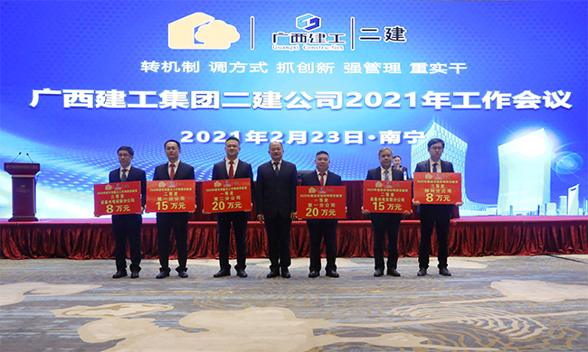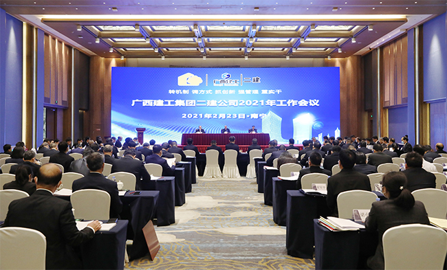 2月23日,广西建工集团第二建筑工程有限责任公司2021年工作会议在南宁召开,广西建工集团有限责任公司副总经理唐农生出席并讲话,二建公司董事长、党委书记黄鼎龙作工作报告,执行总经理、党委副书记卢军宝主持,领导班子成员黄志坚、廖宏福、卫奕忠、叶彤、覃伟、黄元华、袁小军参加。