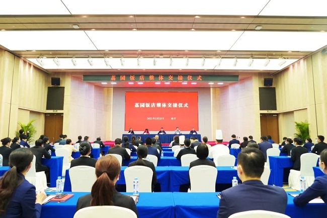 2月23日,南宁荔园维景国际大酒店整体交接仪式在南宁举行,标志着荔园饭店正式由广西建工集团有限责任公司划转自治区接待办管理。自治区党委副秘书长、接待办主任黄武海,绿地大基建集团执行总裁、集团公司董事长、党委书记金宁运出席并讲话。自治区国资委副主任王海燕、自治区接待办副主任杨建豪参加。自治区接待办副主任王春梅主持。