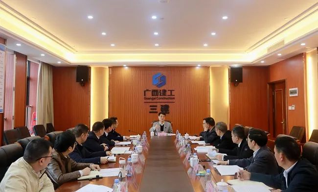 3月5日,绿地大基建集团执行总裁、广西建工集团有限责任公司董事长、党委书记金宁运到三建公司调研指导,了解公司贯彻落实集团公司系列会议精神情况,协调解决生产经营遇到的问题和困难。集团公司董事会秘书、办公室主任(兼)陆志斌主持座谈会。集团公司伍庆锋、方世川,公司领导班子成员张凯、郑毅、罗振中、刘剀、李克领、梁德初、张青蓝、覃承敏参加。