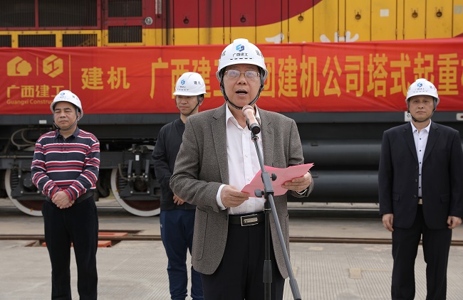 罗涛在致辞中表示,建机公司近千万元的塔机产品通过中欧班列发往哈萨克斯坦,是集团公司的一件喜事,也是一件意义重大的盛事,必将助力集团公司开拓“一带一路”沿线广阔市场,进一步提升广西建工、广西建机的品牌形象。希望建机公司以本次产品出口海外为契机,按照自治区党委和政府的工作部署以及自治区工信厅、商务厅、发改委等有关部门的工作要求,坚决贯彻落实集团公司“转机制,调方式,抓创新,强管理,重实干”的十五字工作方针,持续加大科技创新力度,着力增强产品核心竞争力,抓住“一带一路”建设热潮的大好机遇,坚定信心,勇立潮头,全力开拓市场,在巩固国内重点市场的同时,锐意进军海外市场,努力开创市场经营新局面,为广西社会经济高质量发展作出更大贡献。