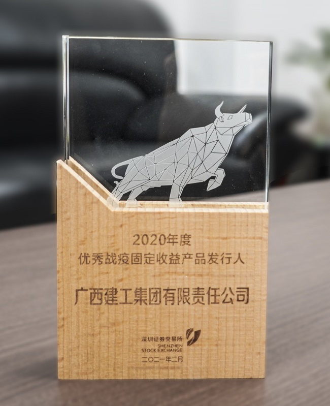近日,广西建工集团有限责任公司荣获深圳证券交易所颁发的“2020年度优秀战疫固定收益产品发行人”奖。这是广西唯一一家企业获此殊荣,所发债券是交易所市场全国首只完成发行簿记的战疫专项债,充分体现了业界对集团公司2020年度在资本市场表现的认可,以及对集团公司在抗击疫情方面所作贡献的肯定。集团公司何一坚、潘林程同时荣获“2020年度优秀战疫固定收益产品发行人优秀个人奖”。