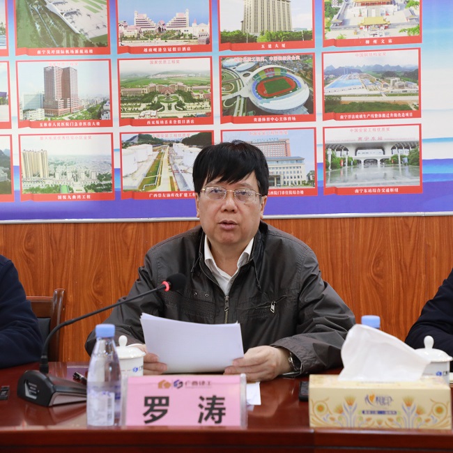 4月11日,广西建工集团有限责任公司第二季度安全生产工作会议在柳州市城市档案中心项目部举行。集团公司总经理、党委副书记、董事罗涛,副总经理唐农生出席并讲话。总经理助理、企业管理部总经理刘新宁参加。