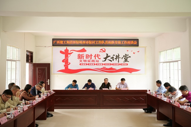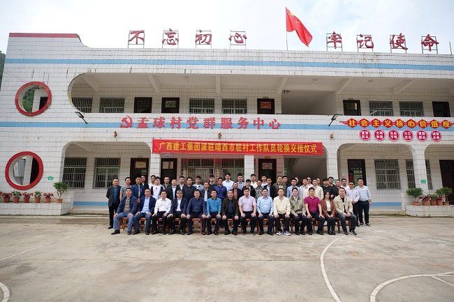 二建公司黄志坚、陆立海,三建公司罗振中、何义昌,四建公司王继红,五建公司彭业波、黄明荣,控股公司韦庆伟,集团公司党群工作部有关人员,新老驻村工作队员等人参加。