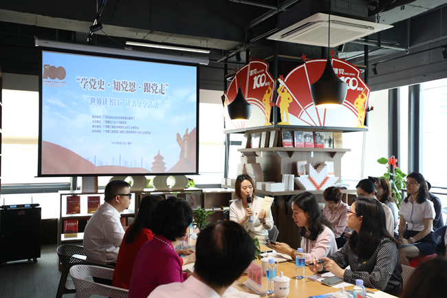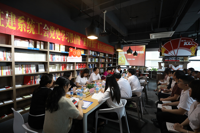 启动仪式后,到场领导、嘉宾一同前往二建公司职工书屋开展“学党史•知党恩•跟党走”世界读书日读书分享活动。活动邀请中共广西区委党校党史党建教研部主任、广西区党校学术委员会委员卢尚纯教授作党史专题讲座。他运用大量的史料和生动的案例,从中国共产党奋斗历程的基本脉络、中国共产党历史上的三大里程碑、百年奋斗的基本经验等三个方面进行深刻阐述。参与活动的嘉宾代表围绕党史学习教育主题分享交流学习心得。大家纷纷表示,将以此次活动为契机,进一步在学思践悟中坚定理想信念,在奋发有为中践行初心使命,充分发挥党员的先锋模范作用,以昂扬姿态高质量、高标准完成各项工作任务,以优异成绩迎接建党一百周年。