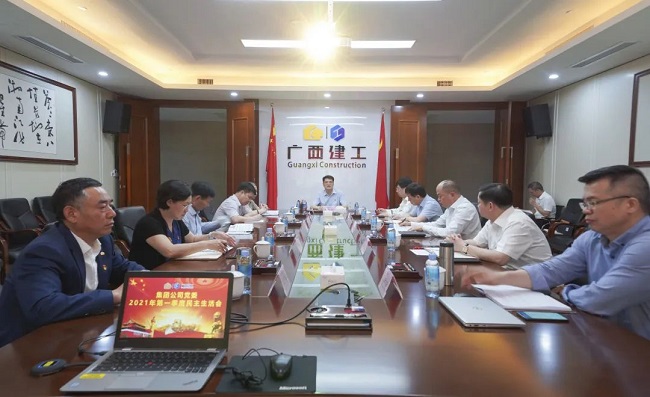 4月23日,广西建工集团有限责任公司党委2021年第一季度民主生活会在建工大厦1号楼2213会议室召开。绿地大基建集团执行总裁、集团公司党委书记、董事长金宁运主持会议。集团公司党委副书记、总经理、董事罗涛,班子成员陈家坚、余仲远、陈礼松、唐农生、侯立林、赖榆、李静丹、陆志斌、汪启来参加。