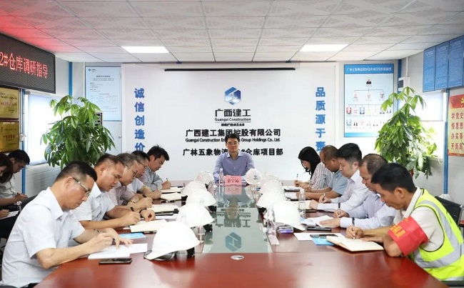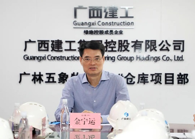 4月30日,绿地大基建集团执行总裁、广西建工集团有限责任公司董事长、党委书记金宁运到控股公司承建的广林五象物流园2#仓库项目调研指导。集团公司总经理助理、企业管理部总经理刘新宁,职工董事、总经理助理、资金管理中心主任何一坚,控股公司董事长、党委书记陆彪,领导班子江海华、邓规祥、曾宇博、邓生流陪同。