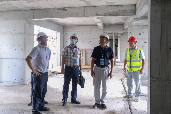 6月17日,广西建工集团有限责任公司财务总监汪启来到三建公司承建的南宁威宁·世纪花城经济适用住房项目开展2021年上半年质量安全综合大检查。集团公司总经理助理、企业管理部总经理刘新宁参加,三建公司副总经理、安全总监覃承敏参加。