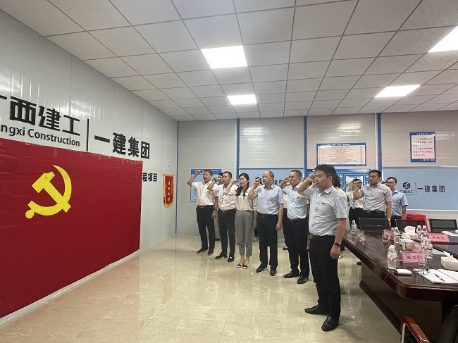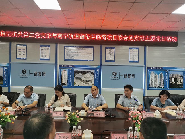 集团机关第二党支部与一建集团四分公司南宁轨道御玺君临湾项目联合党支部党员、群众等20余人参加。