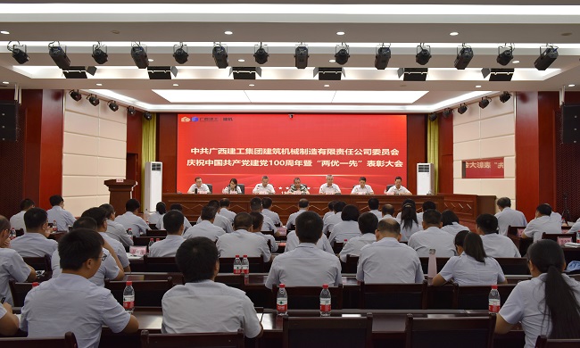 6月29日,广西建工集团建筑机械制造有限责任公司党委在办公楼六楼会议厅召开庆祝中国共产党成立100周年暨“两优一先”表彰大会。集团公司党委副书记陈家坚出席并讲话。公司党委书记、董事长梁发深,领导班子成员邱方亮、余耀森、何懿翔、韦红云、漆大山参加。