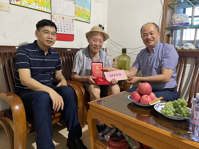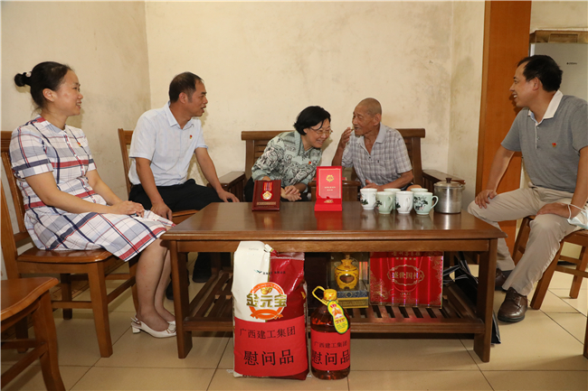 6月29日,广西建工集团有限责任公司党委副书记、总经理、董事罗涛,领导班子成员余仲远、唐农生、侯立林、赖榆、李静丹、陆志斌、汪启来开展慰问“光荣在党50年”老党员主题活动。