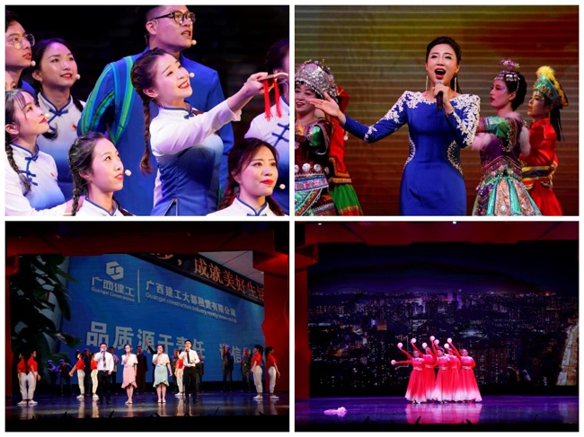 历经万难铸辉煌,改革更促国富强。一首首歌曲,一幅幅画面,展示了新时代民族复兴的壮丽画卷,描绘了从富起来到强起来的历史巨变,感召着广西建工人在党的领导下自信前行的决心和意志。