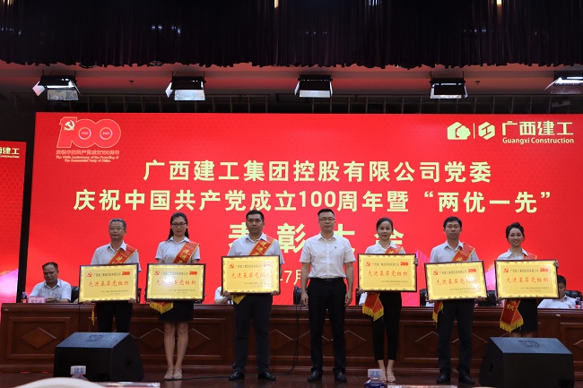 陆志斌、黄大友及控股公司领导班子成员分别为优秀党员、优秀党务工作者、先进基层党组织以及崇左市疫情防控临时集中隔离点项目先进集体、先进个人颁奖。