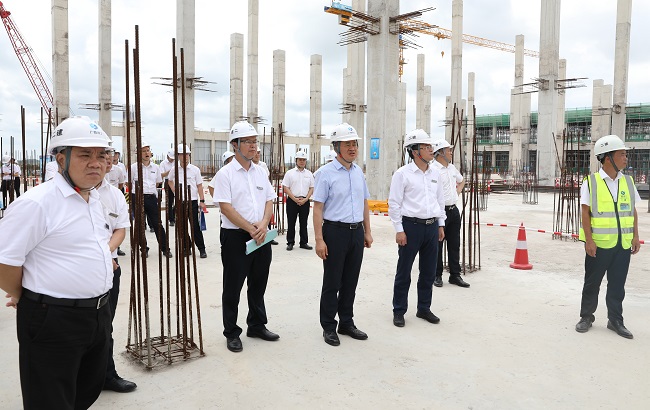 7月3日,广西建工集团第二建筑工程有限责任公司在参建的钦州超薄玻璃基板深加工项目举办现场观摩会暨“加强项目管理,提升工程品质”主题活动,广西建工集团有限责任公司副总经理唐农生出席并讲话,二建公司董事长、党委书记黄鼎龙,执行总经理、党委副书记卢军宝,总工程师叶彤,副总经理、安全总监黄元华参加。