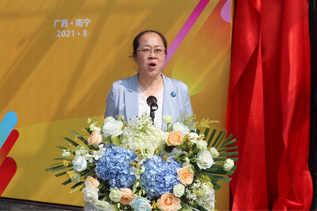 仪式上,刘咏梅、罗涛、伍艳娟、一建集团杨俊与自治区信访局、自治区财政厅、自治区妇联、广西妇女儿童活动中心、自治区发展改革委社会发展处、自治区教育厅基础教育处等负责人为广西妇女儿童活动中心五象新中心揭牌。