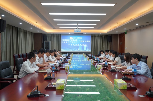 9月18日,广西建工集团有限责任公司总经理、党委副书记、董事罗涛在建工大厦1号楼2302会议室会见中银金融资产投资有限公司副总经理竺丰平。集团公司董事、总经理助理、资金管理中心总经理何一坚,中国银行广西分行行长助理胡求索参加。