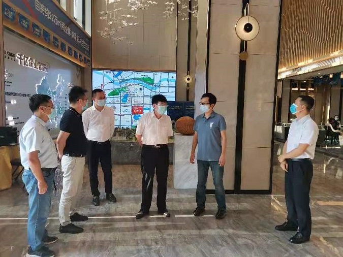 9月30日下午,广西建工集团有限责任公司总经理、党委副书记、董事罗涛到广西大都投资有限公司建工城项目售楼部检查指导国庆期间防疫和销售工作。。