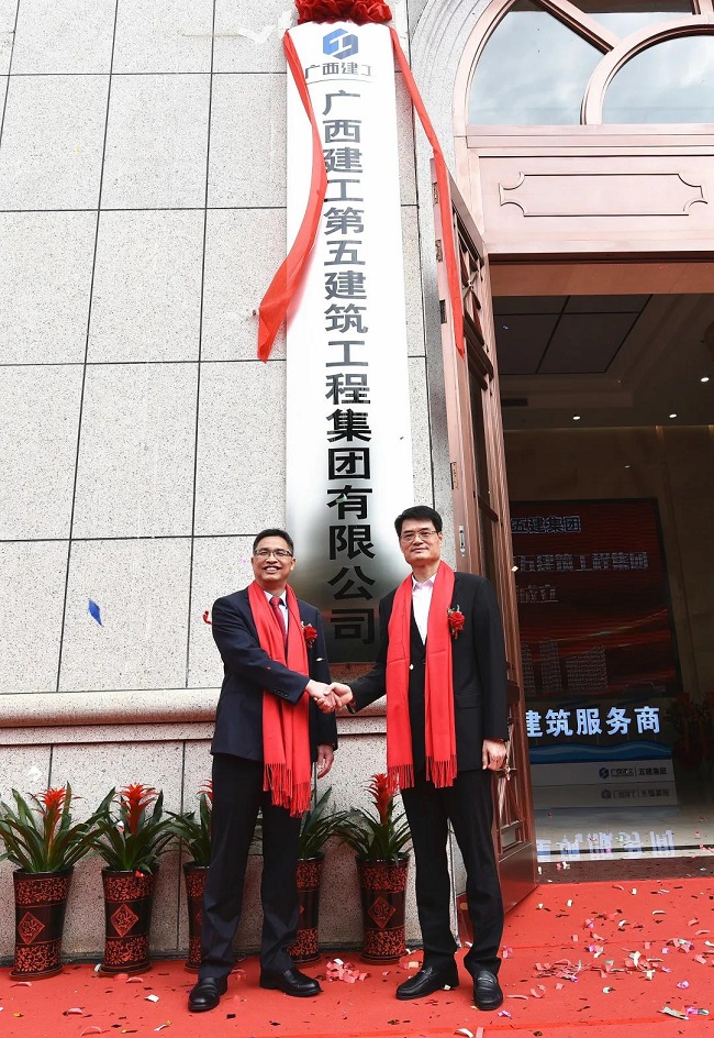 金宁运和欧志永为“广西建工第五建筑工程集团有限公司”揭牌