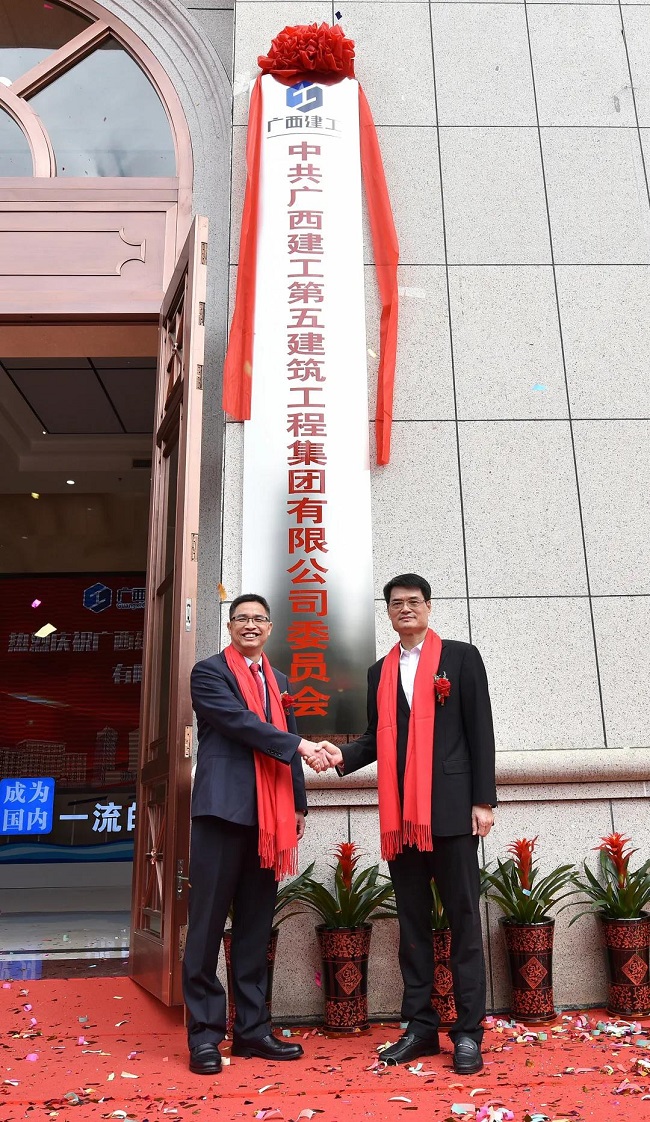金宁运和欧志永为“中国共产党广西建工第五建筑工程集团有限公司委员会”揭牌