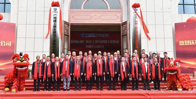 10月18日,广西建工第五建筑工程集团有限公司揭牌成立仪式在五建大厦举行。绿地大基建集团执行总裁、广西建工集团有限责任公司董事长、党委书记金宁运出席并讲话,集团公司副总经理赖榆主持,董事会秘书、办公室主任(兼)陆志斌宣读人事任命文件。五建集团董事长、党委书记欧志永致辞。