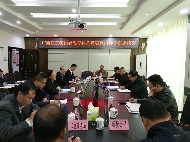 11月17-18日,广西建工集团有限责任公司副总经理李静丹带队到河池市东兰凤山两县就双方合作、工程项目建设等方面,先后与东兰县国有资产投资经营有限公司和凤山县政府主要领导进行深入交流。