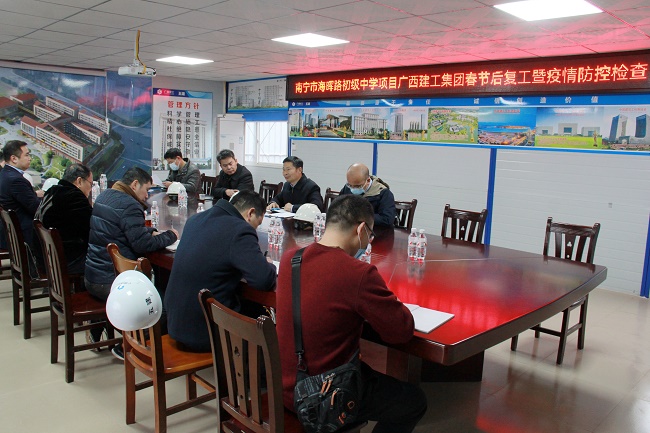 2月9日,广西建工集团有限责任公司副总经理侯立林到二建公司承建的南宁水街中央城一期工程项目和五建集团承建的南宁市海晖路初级中学建设工程(EPC)工程总承包项目开展质量安全“飞行”检查暨节后复工复产检查。集团公司总经理助理、企业管理部总经理刘新宁陪同,二建公司执行总经理、党委副书记卢军宝参加。