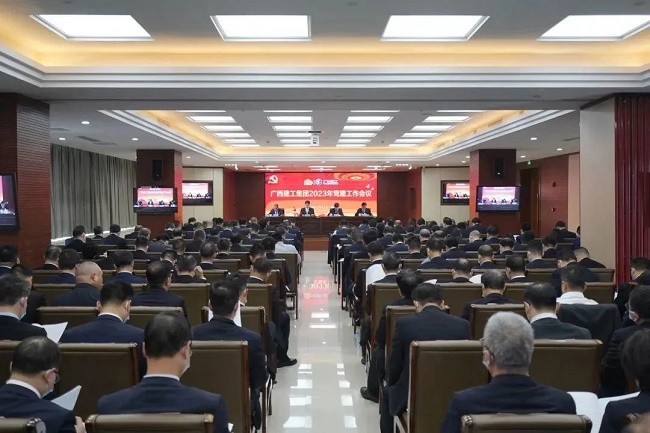 2月11日下午,广西建工集团有限责任公司2023年党建工作会议在建工大厦召开。会议学习贯彻上级会议精神,总结2022年党建工作,研究部署2023年工作。绿地大基建集团执行总裁、集团公司党委书记、董事长金宁运出席并讲话。集团公司党委副书记、工会主席陈家坚作工作报告。集团公司党委副书记、总经理、董事罗涛和党员领导班子成员陈礼松、赖榆、李静丹、陆志斌、黄鸣、吕仕民、谢伟明出席,党委委员方世川参加。纪委书记余仲远主持。