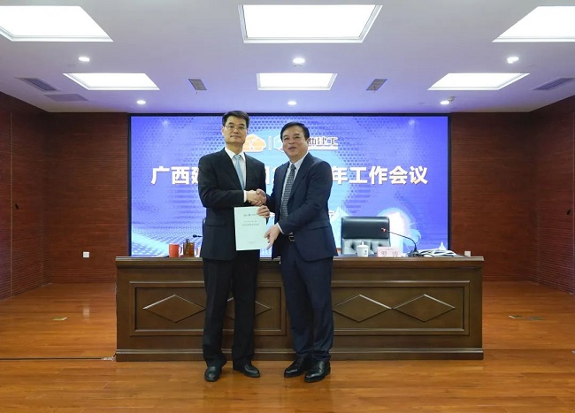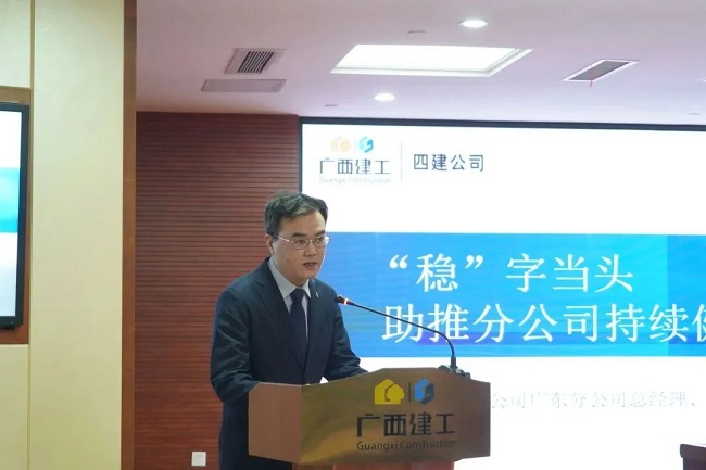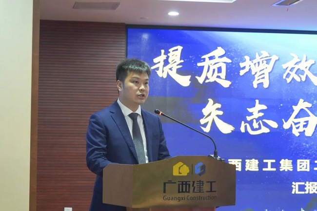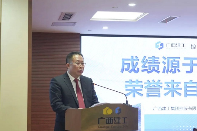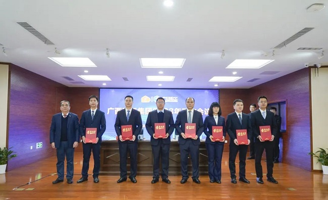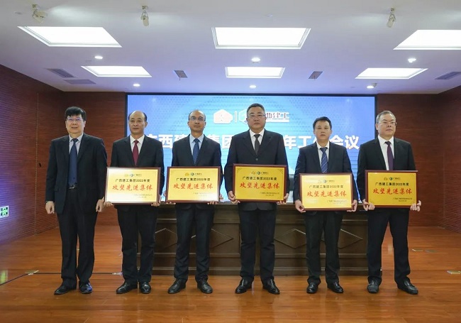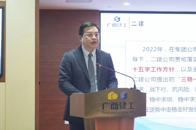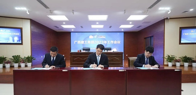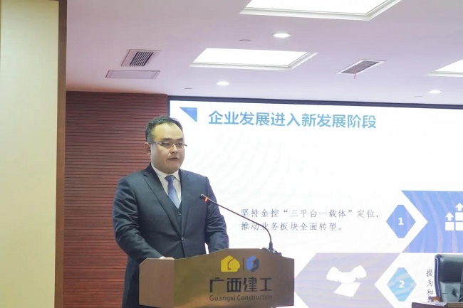 2月11日上午,广西建工集团有限责任公司2023年度工作会议在建工大厦召开,会议回顾2022年工作情况,总结经验,分析形势,表彰先进,部署2023年工作目标任务与重点工作,统一思想、凝心聚力,攻坚克难、开创新局,奋力完成年度目标任务,推动企业平稳、健康、可持续发展取得新突破。绿地大基建集团执行总裁、集团公司董事长、党委书记金宁运出席并作工作报告,集团公司总经理、党委副书记、董事罗涛主持并宣读表彰决定,领导班子成员陈家坚、余仲远、陈礼松、赖榆、李静丹、陆志斌、黄鸣、吕仕民、谢伟明参加。