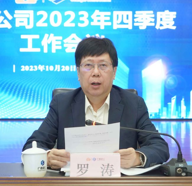 2023年10月20日上午,广西建工集团有限责任公司2023年四季度工作会议在建工大厦召开。会议表彰三季度经营业绩优秀单位,学习贯彻绿地集团四季度工作会议精神,总结三季度工作情况,分析存在困难和问题,研判面临形势,部署四季度重点工作。绿地大基建集团执行总裁、集团公司董事长、党委书记金宁运出席并讲话。集团公司总经理、党委副书记、董事罗涛主持,领导班子成员陈家坚、余仲远、陈礼松、赖榆、李静丹、陆志斌、吕仕民参加。