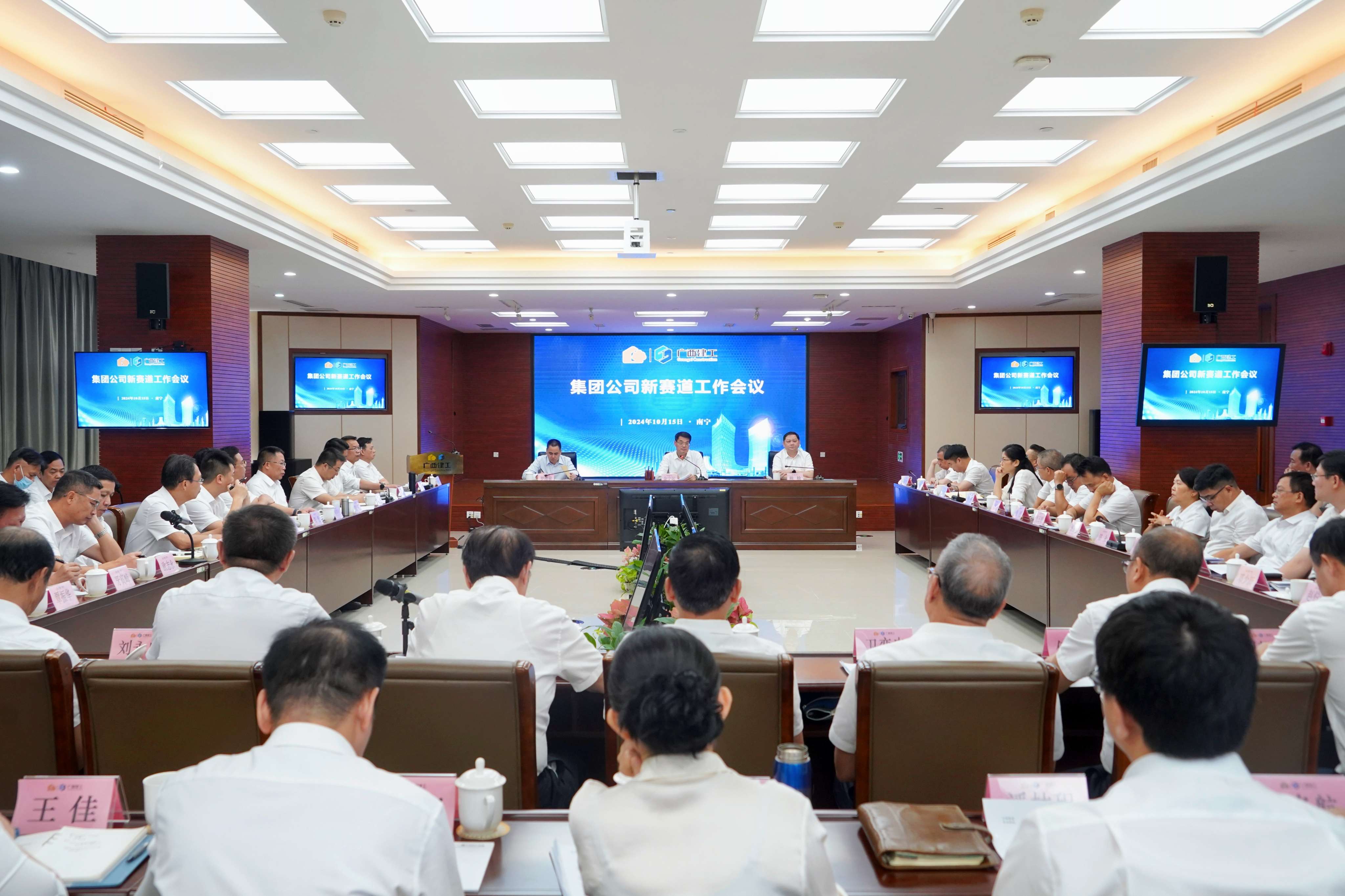 10月15日下午,广西建工集团有限责任公司新赛道工作会议在建工大厦召开。会议统一思想,明确任务,加快行动,推进新赛道培育发展工作尽快走上正轨,尽快取得成效,为集团公司平稳可持续发展提供有力支撑。绿地大基建集团执行总裁、集团公司董事长、党委书记金宁运出席并讲话。集团公司总经理、党委副书记、董事赖榆主持,领导班子成员罗清泉、陈家坚、余仲远、陈礼松、陆志斌、黄鸣、吕仕民、何一坚参加。