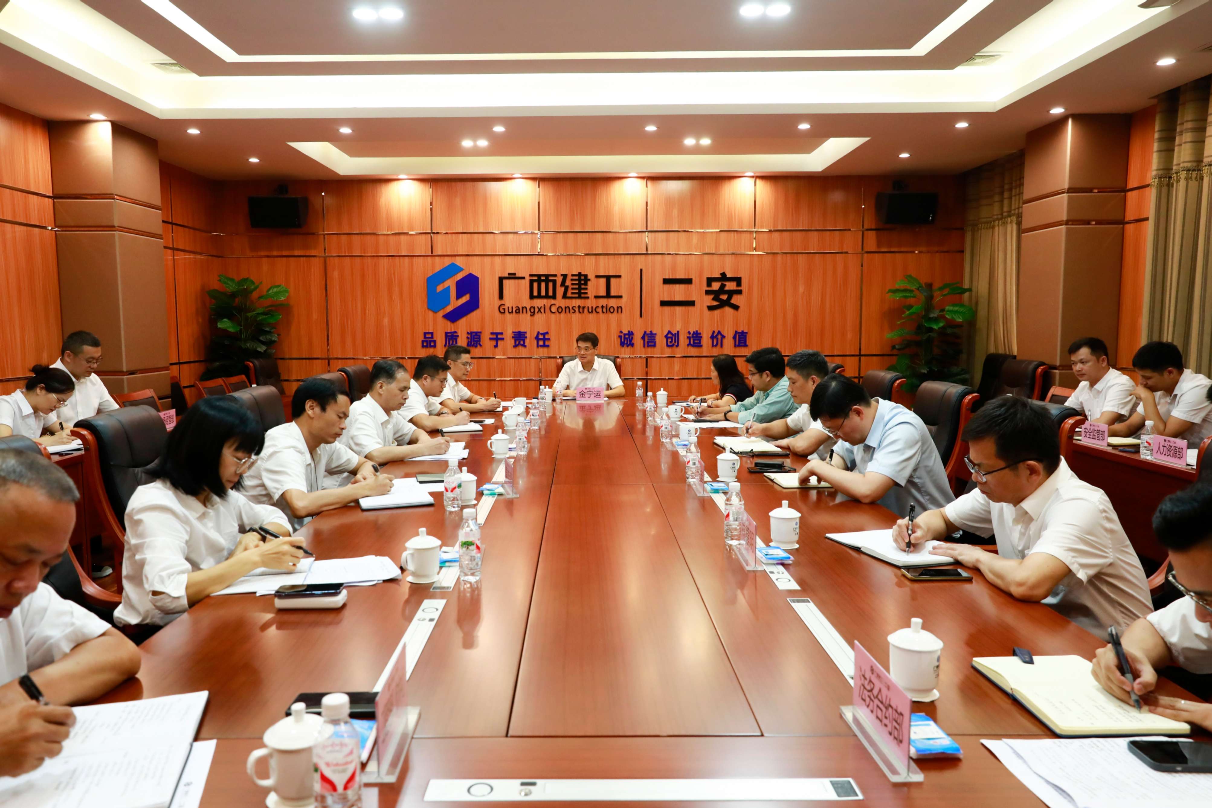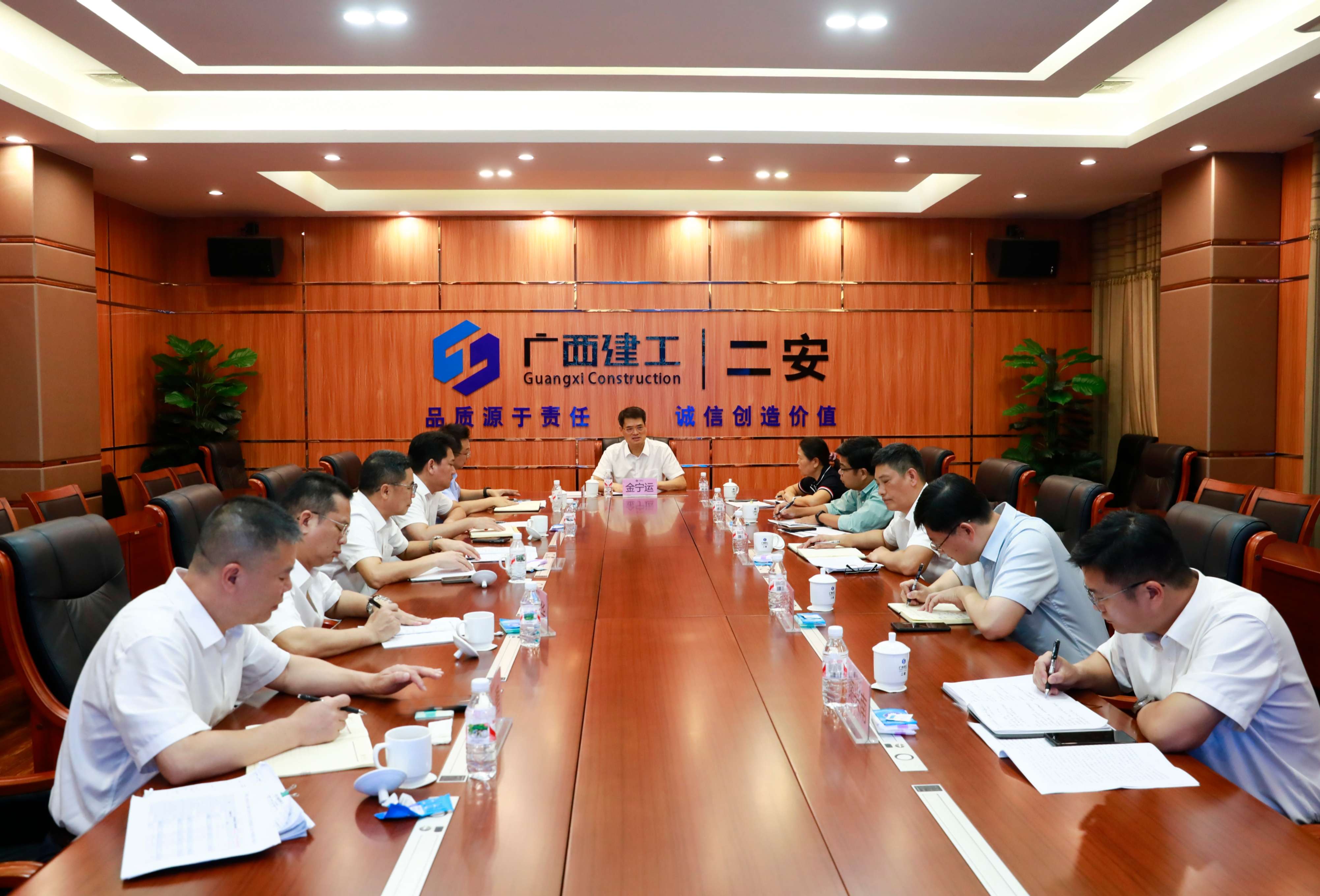 集团公司骆春燕、陈永、赵伯廷、严志军,五建集团张凯,三建公司郑毅,二安公司欧志永、陶兴南、韦智中、莫雄清、林建明、郭喜波,冶建公司覃振华,华盈公司卿勇,以及二安公司各部门主要负责人参加。