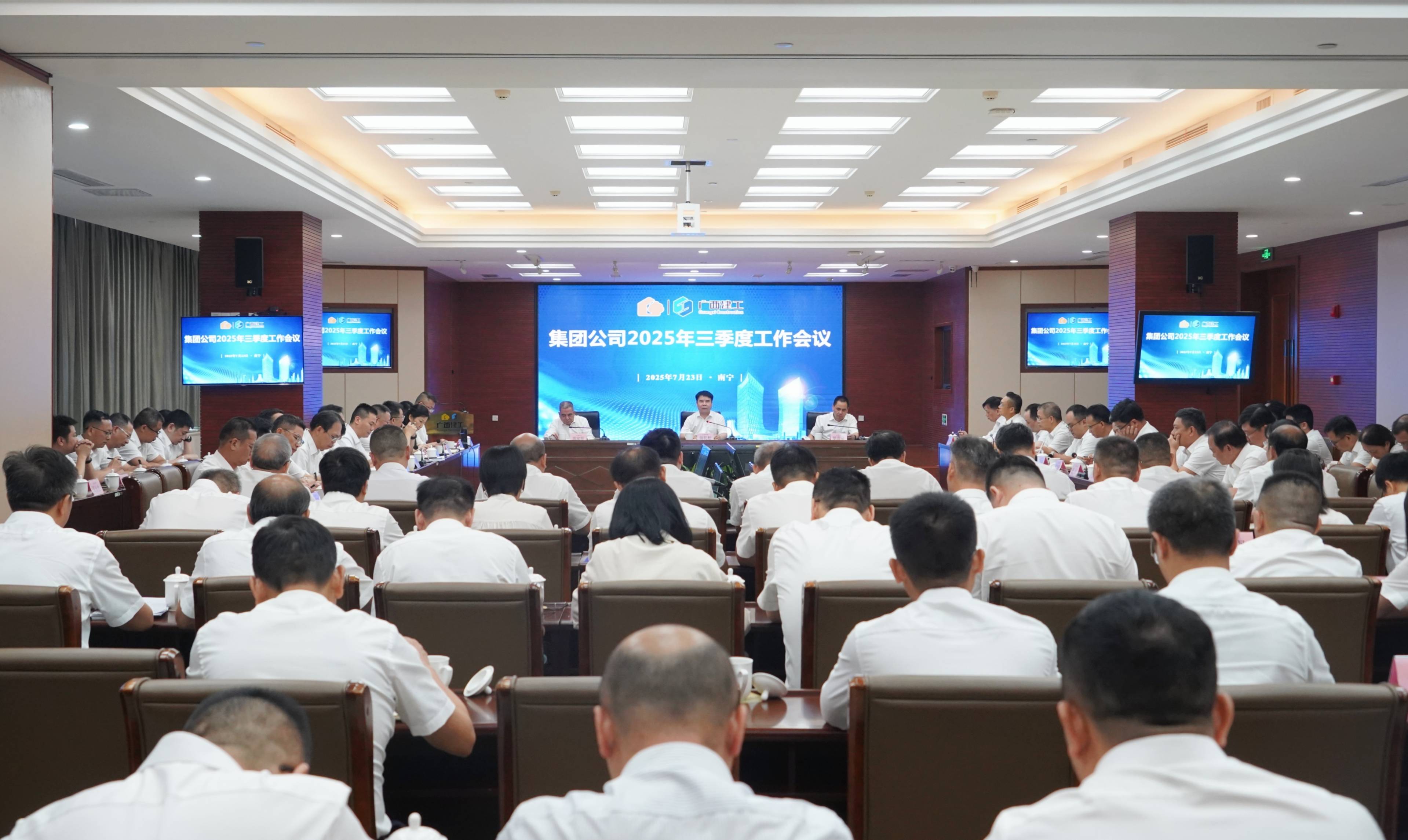 7月23日下午,广西建工集团有限责任公司三季度工作会议在建工大厦召开。会议学习贯彻绿地集团三季度工作会议精神,总结分析二季度生产经营情况,深刻剖析存在的困难挑战,交流工作经验,部署安排三季度重点工作,凝心聚力推动企业实现恢复性增长。集团公司总经理陈礼松出席会议并讲话。集团公司副董事长罗清泉主持会议,领导班子成员陈家坚、余仲远、陆志斌、黄鸣、吕仕民、谢伟明、何一坚参加。