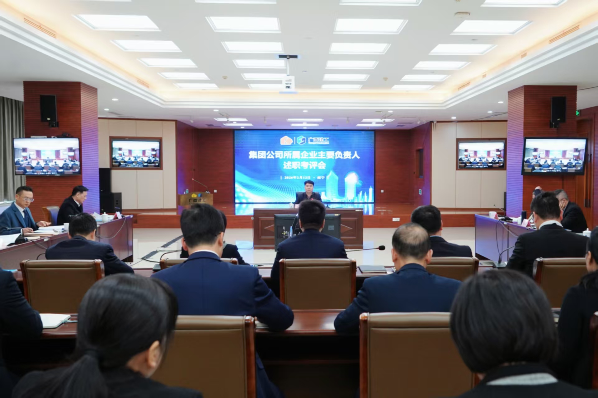 2月12日下午,广西建工集团有限责任公司所属企业主要负责人2025年度述职考评会在建工大厦召开。集团公司总经理、党委副书记(主持工作)陈礼松主持会议,集团公司领导班子成员陈家坚、余仲远、陆志斌、黄鸣、吕仕民、何一坚参加会议。